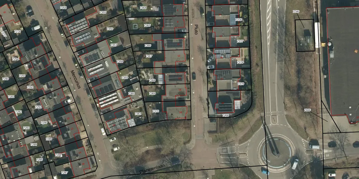 Het perceel waarop Pluto 16 staat heeft een oppervlakte van 255 m². Dit is een middelgroot perceel. De perceeloppervlakte wordt geregistreerd door het Kadaster. Gedetailleerde informatie over de maten van dit perceel kunt u vinden in het rapport Kadastrale kaart met maatvoering van Pluto 16.