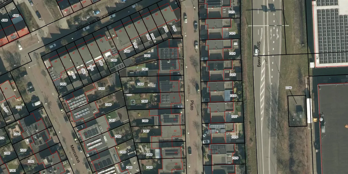 Het perceel waarop Pluto 6 staat heeft een oppervlakte van 342 m². Dit is een groot perceel. De perceeloppervlakte wordt geregistreerd door het Kadaster. Gedetailleerde informatie over de maten van dit perceel kunt u vinden in het rapport Kadastrale kaart met maatvoering van Pluto 6.
