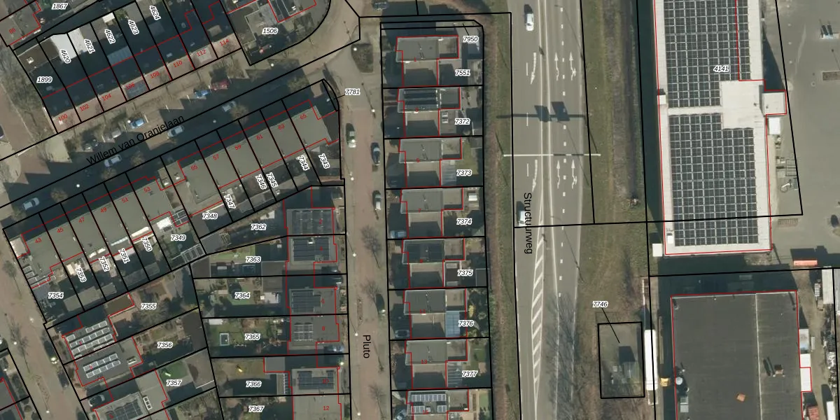 Het perceel waarop Pluto 7 staat heeft een oppervlakte van 282 m². Dit is een middelgroot perceel. De perceeloppervlakte wordt geregistreerd door het Kadaster. Gedetailleerde informatie over de maten van dit perceel kunt u vinden in het rapport Kadastrale kaart met maatvoering van Pluto 7.