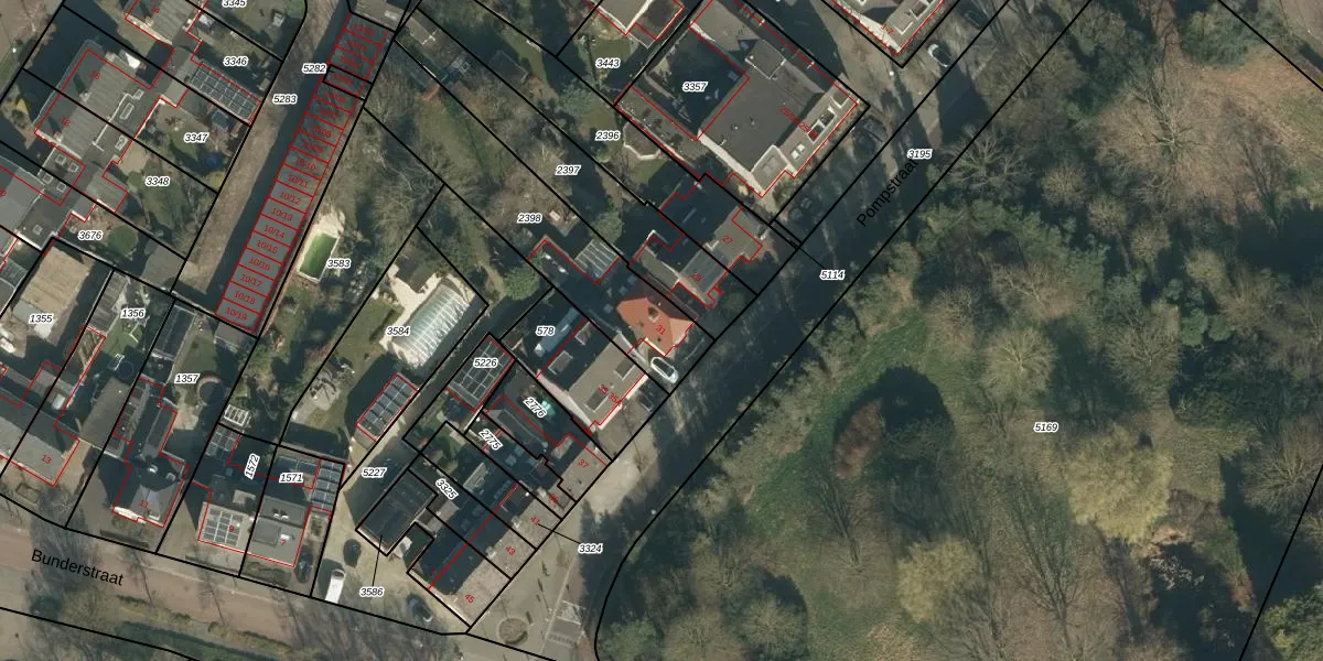 Gebruik de zoekbalk of klik op een perceel voor informatie over de adressen binnen dit perceel.