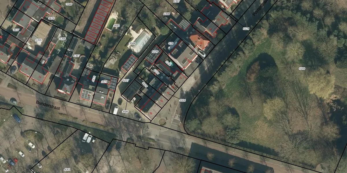 Het perceel waarop Pompstraat 39 staat heeft een oppervlakte van 89 m². Dit is een klein perceel. De perceeloppervlakte wordt geregistreerd door het Kadaster. Gedetailleerde informatie over de maten van dit perceel kunt u vinden in het rapport Kadastrale kaart met maatvoering van Pompstraat 39.