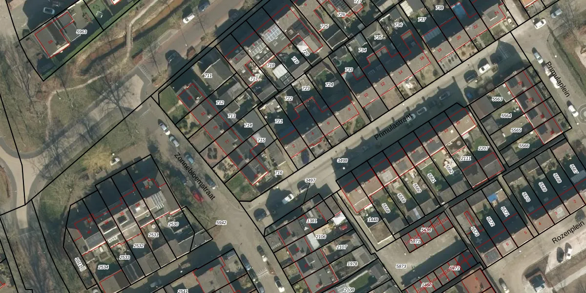 Gebruik de zoekbalk of klik op een perceel voor informatie over de adressen binnen dit perceel.