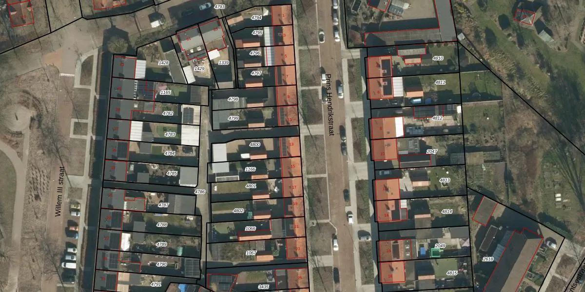 Prins Hendrikstraat 13 is gelegen op kadastraal perceel SDL00G4800. Deze kadastrale aanduiding is uniek en wordt gebruikt door het Kadaster om eigendomsrechten en andere zakelijke rechten vast te leggen. Het perceel maakt onderdeel uit van de kadastrale gemeente Schijndel.