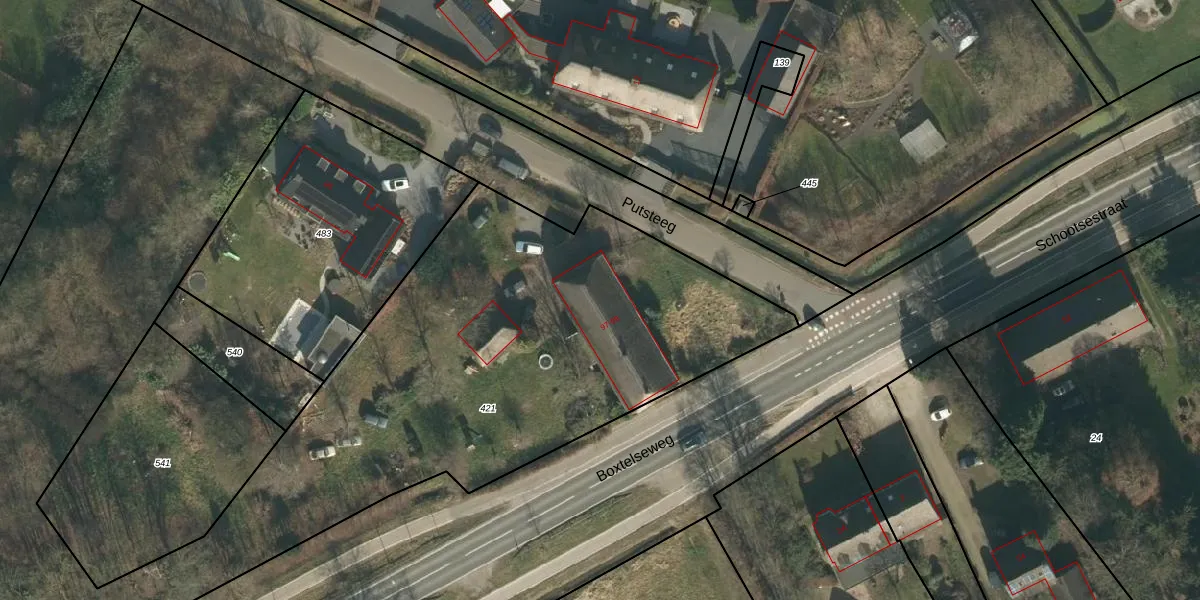 Het perceel waarop het adres ligt is SDL00-L-421. De afkorting 'SDL00' staat voor kadastrale gemeente Schijndel. De gemiddelde perceeloppervlakte in de kadastrale gemeente Schijndel is 2938 m². Dit perceel is met zijn 5805 m² dus groter dan gemiddeld. Het grootste perceel in de kadastrale gemeente is 41,5 ha. Het kleinste perceel heeft een oppervlakte van 0 m². Er zijn 2 adressen aanwezig op het perceel. De huidige grenzen van het perceel zijn digitaal in de Basisregistratie Kadaster (BRK) geregistreerd op 17-12-2020.