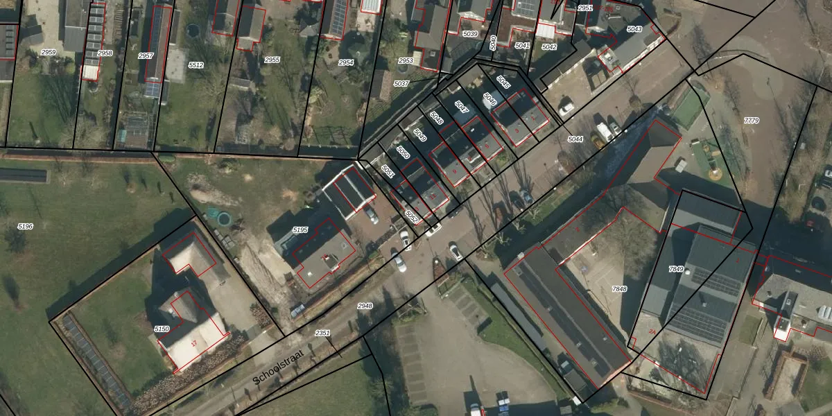 Schoolstraat 13 is gelegen op kadastraal perceel SDL00G5051. Deze kadastrale aanduiding is uniek en wordt gebruikt door het Kadaster om eigendomsrechten en andere zakelijke rechten vast te leggen. Het perceel maakt onderdeel uit van de kadastrale gemeente Schijndel.