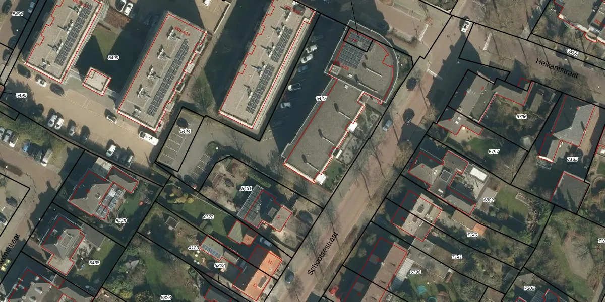 Het perceel waarop Schootsestraat 1-14 staat heeft een oppervlakte van 2165 m². Dit is een zeer groot perceel. De perceeloppervlakte wordt geregistreerd door het Kadaster. Gedetailleerde informatie over de maten van dit perceel kunt u vinden in het rapport Kadastrale kaart met maatvoering van Schootsestraat 1-14.