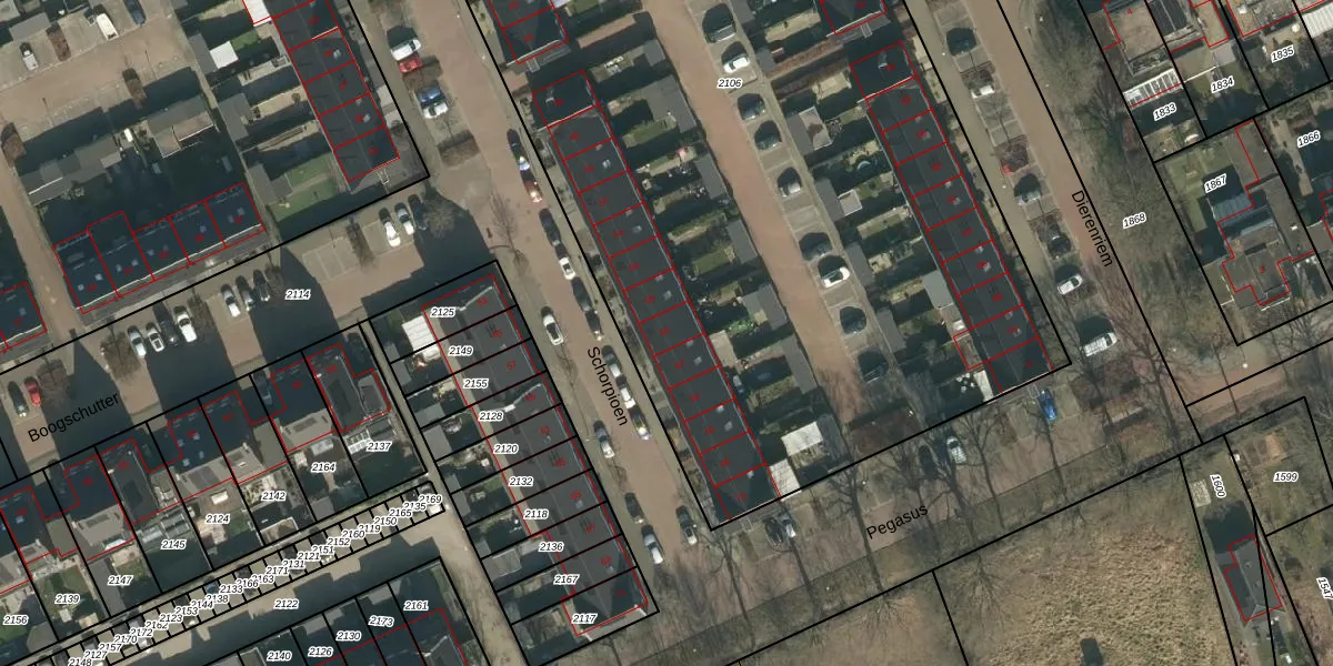 Het perceel waarop Schorpioen 60 staat heeft een oppervlakte van 7110 m². Dit is een zeer groot perceel. De perceeloppervlakte wordt geregistreerd door het Kadaster. Gedetailleerde informatie over de maten van dit perceel kunt u vinden in het rapport Kadastrale kaart met maatvoering van Schorpioen 60.