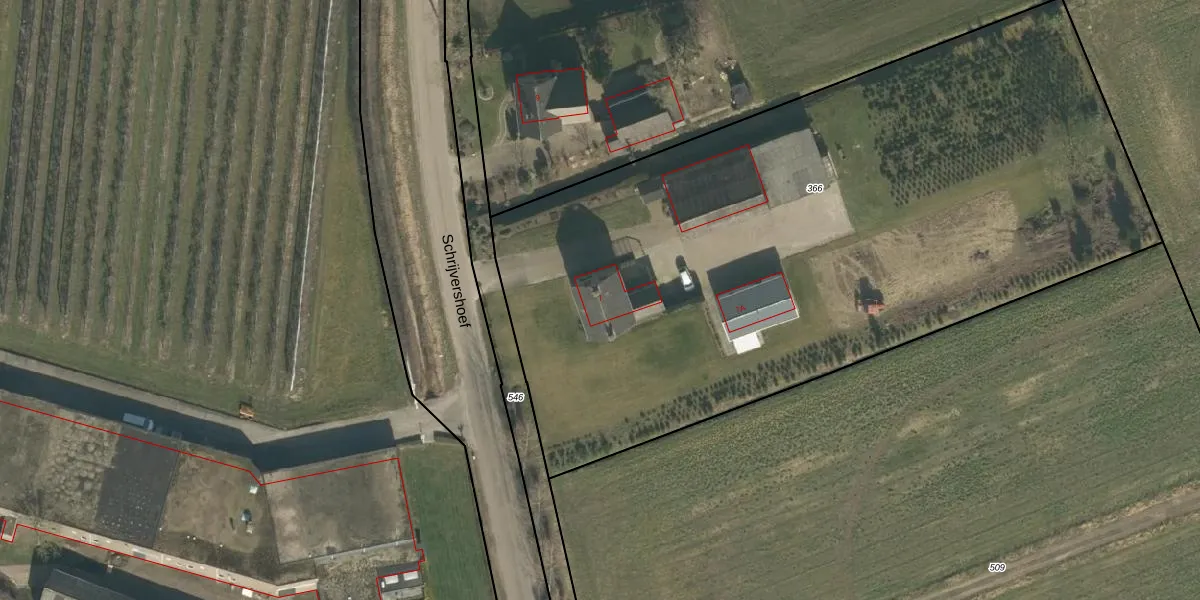 Het perceel waarop Schrijvershoef 7 staat heeft een oppervlakte van 4715 m². Dit is een zeer groot perceel. De perceeloppervlakte wordt geregistreerd door het Kadaster. Gedetailleerde informatie over de maten van dit perceel kunt u vinden in het rapport Kadastrale kaart met maatvoering van Schrijvershoef 7.