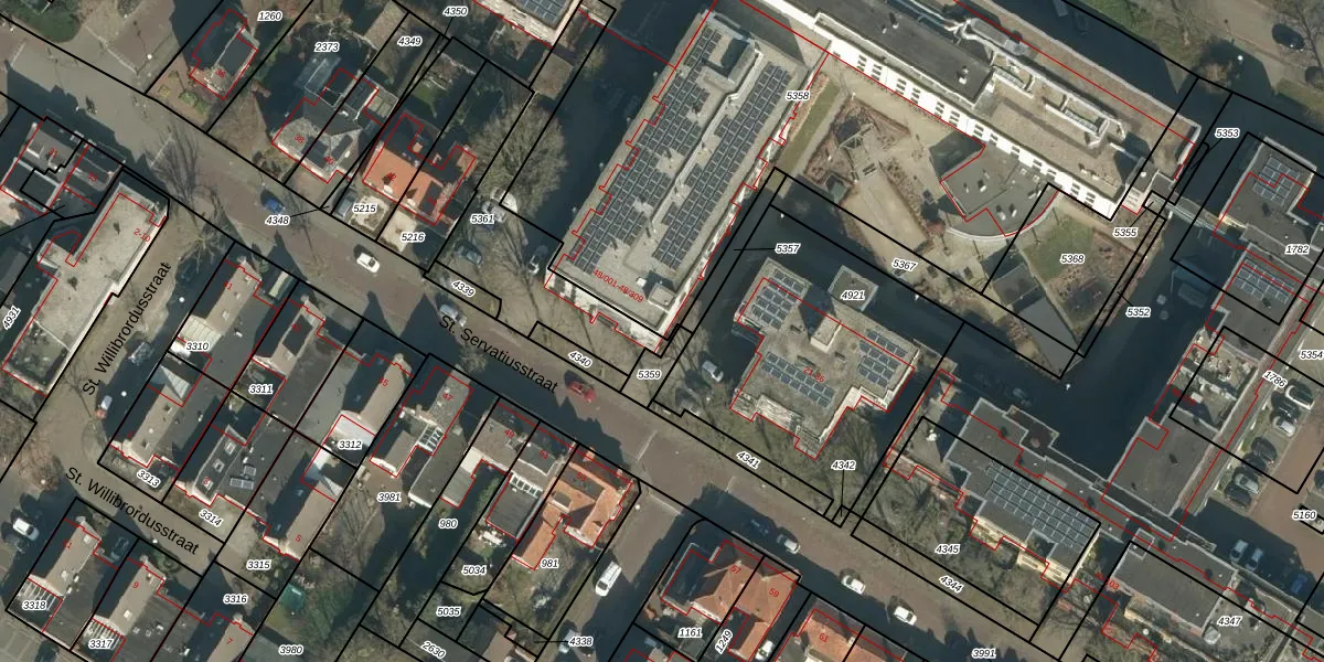 Het perceel waarop St. Servatiusstraat 48-109 staat heeft een oppervlakte van 4656 m². Dit is een zeer groot perceel. De perceeloppervlakte wordt geregistreerd door het Kadaster. Gedetailleerde informatie over de maten van dit perceel kunt u vinden in het rapport Kadastrale kaart met maatvoering van St. Servatiusstraat 48-109.