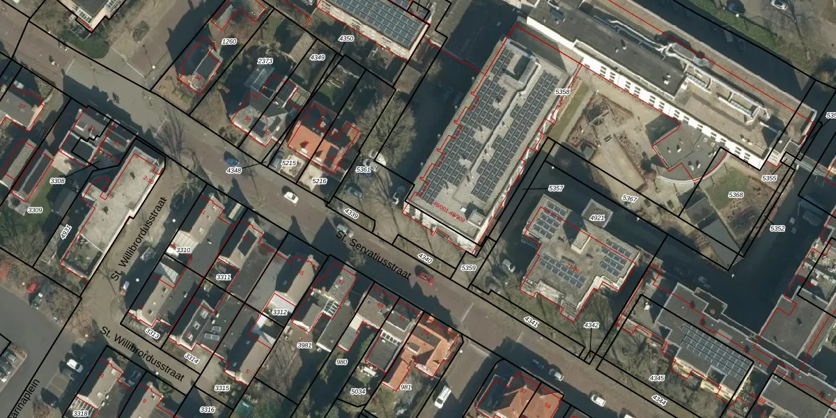 Het perceel waarop St. Servatiusstraat 48-201 staat heeft een oppervlakte van 1081 m². Dit is een zeer groot perceel. De perceeloppervlakte wordt geregistreerd door het Kadaster. Gedetailleerde informatie over de maten van dit perceel kunt u vinden in het rapport Kadastrale kaart met maatvoering van St. Servatiusstraat 48-201.