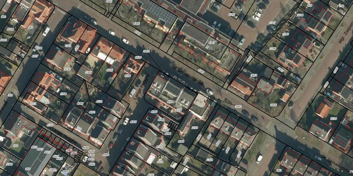 Het perceel waarop St. Servatiusstraat 69 staat heeft een oppervlakte van 474 m². Dit is een groot perceel. De perceeloppervlakte wordt geregistreerd door het Kadaster. Gedetailleerde informatie over de maten van dit perceel kunt u vinden in het rapport Kadastrale kaart met maatvoering van St. Servatiusstraat 69.