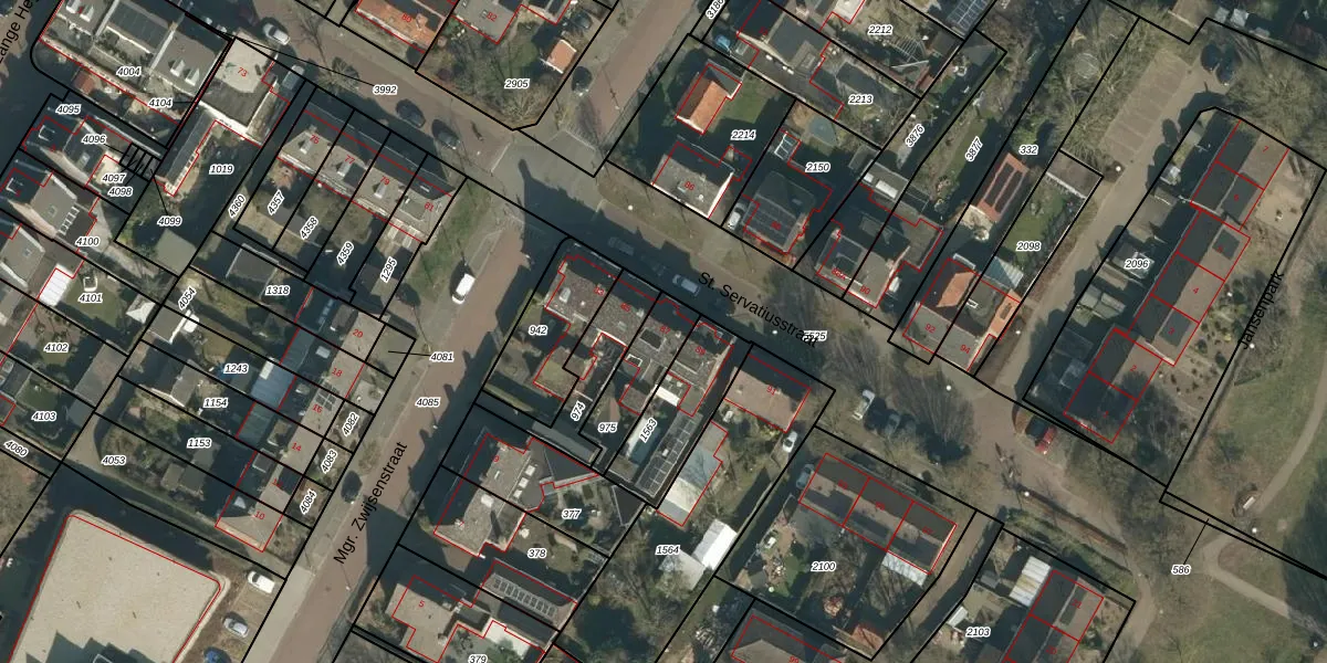 St. Servatiusstraat 87 is gelegen op kadastraal perceel SDL00G975. Deze kadastrale aanduiding is uniek en wordt gebruikt door het Kadaster om eigendomsrechten en andere zakelijke rechten vast te leggen. Het perceel maakt onderdeel uit van de kadastrale gemeente Schijndel.