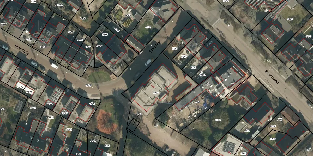 Het perceel waarop het adres ligt is SDL00-H-4922. De afkorting 'SDL00' staat voor kadastrale gemeente Schijndel. Het perceel is 1754 m² groot. Dat is kleiner dan de gemiddelde perceeloppervlakte in Schijndel, dat op 2928,71 m² ligt. De grootste perceeloppervlakte in de kadastrale gemeente is 41,5 ha. De kleinste oppervlakte bedraagt 0 m². Op het perceel zijn 12 adressen aanwezig. De huidige grenzen van het perceel zijn digitaal in de Basisregistratie Kadaster (BRK) geregistreerd op 07-02-2011.