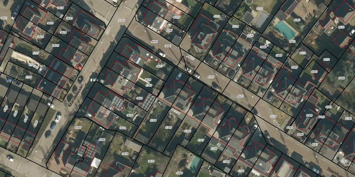 Het perceel waarop Stamhuis 57 staat heeft een oppervlakte van 457 m². Dit is een groot perceel. De perceeloppervlakte wordt geregistreerd door het Kadaster. Gedetailleerde informatie over de maten van dit perceel kunt u vinden in het rapport Kadastrale kaart met maatvoering van Stamhuis 57.