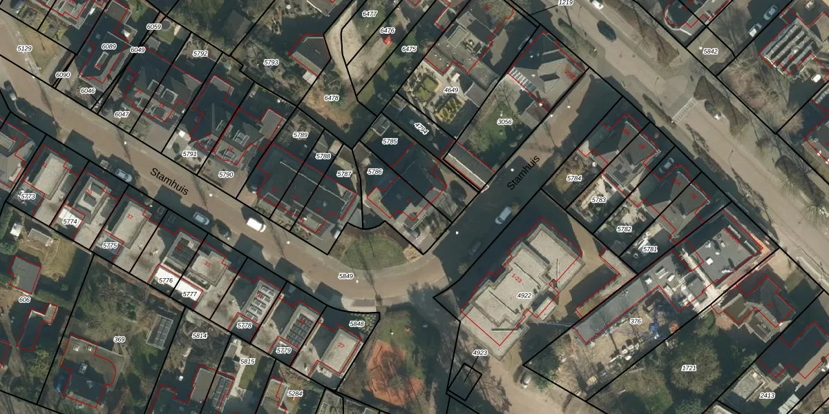 Het perceel waarop Stamhuis 6 staat heeft een oppervlakte van 292 m². Dit is een middelgroot perceel. De perceeloppervlakte wordt geregistreerd door het Kadaster. Gedetailleerde informatie over de maten van dit perceel kunt u vinden in het rapport Kadastrale kaart met maatvoering van Stamhuis 6.