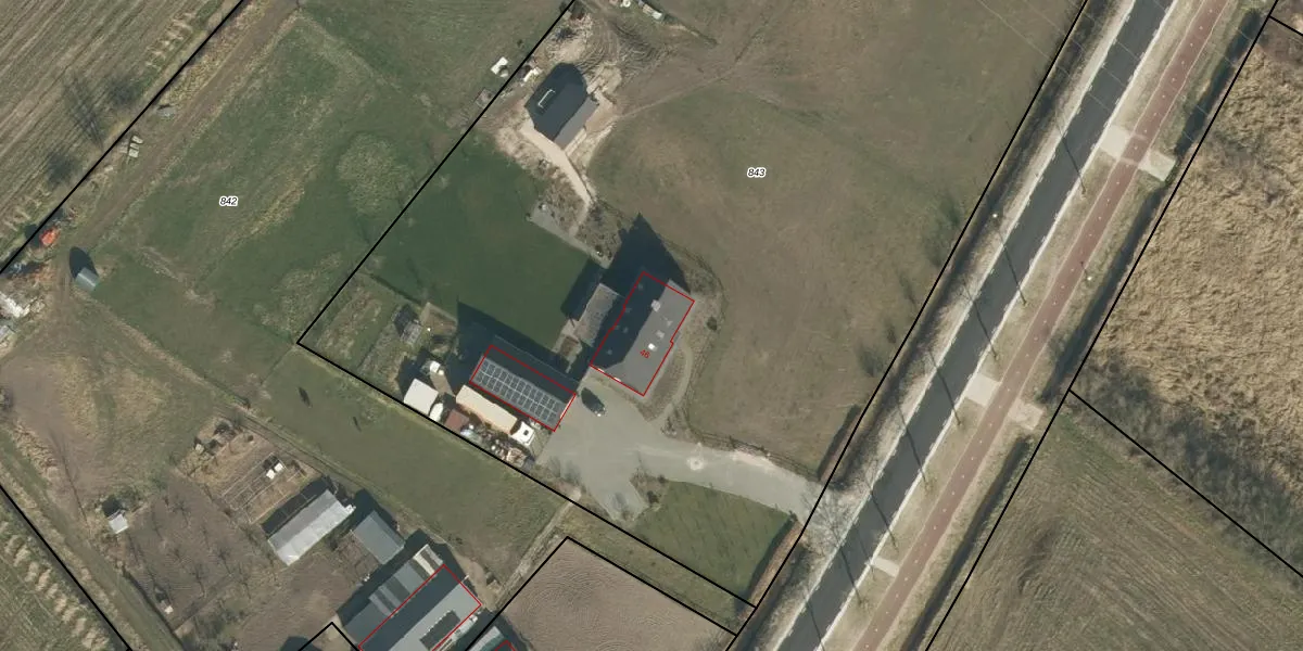 Het adres ligt op het perceel SDL00-N-843, dat zich in de kadastrale gemeente Schijndel bevindt. Het perceel is met 8270 m² relatief groot. Het gemiddelde ligt in de kadastrale gemeente Schijndel op 2928,91 m². De grootste perceeloppervlakte in de kadastrale gemeente is 41,5 ha. De kleinste oppervlakte bedraagt 0 m². Op het perceel bevinden zich geen andere adressen. De laatste wijziging in het de Basisregistratie Kadaster (BRK) was op 27-06-2022.