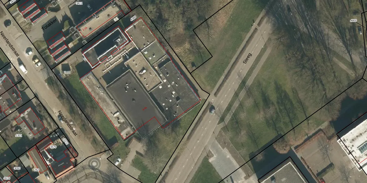 Het perceel waarop Steeg 6-H staat heeft een oppervlakte van 4475 m². Dit is een zeer groot perceel. De perceeloppervlakte wordt geregistreerd door het Kadaster. Gedetailleerde informatie over de maten van dit perceel kunt u vinden in het rapport Kadastrale kaart met maatvoering van Steeg 6-H.
