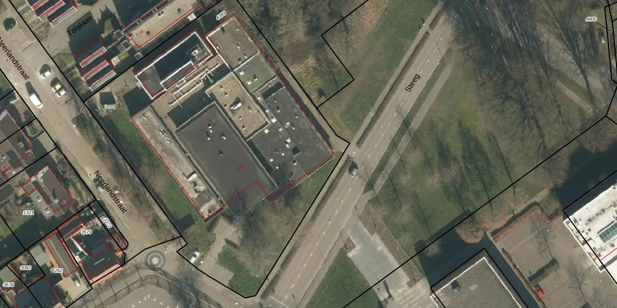 Het perceel waarop Steeg 6-I staat heeft een oppervlakte van 4475 m². Dit is een zeer groot perceel. De perceeloppervlakte wordt geregistreerd door het Kadaster. Gedetailleerde informatie over de maten van dit perceel kunt u vinden in het rapport Kadastrale kaart met maatvoering van Steeg 6-I.