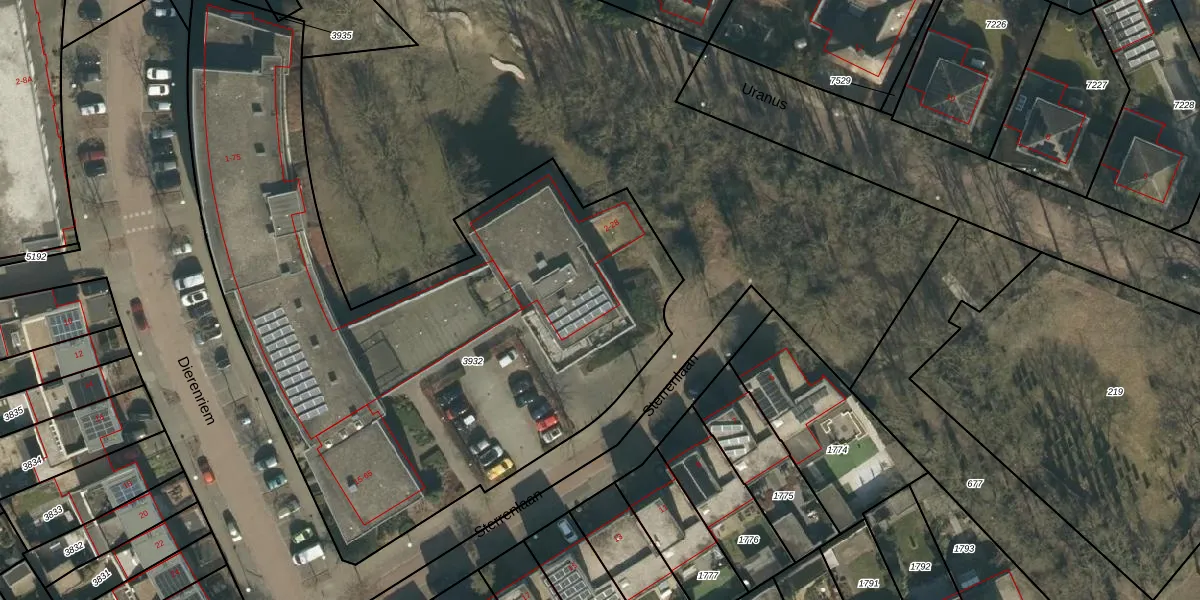 Sterrenlaan 14 is gelegen op kadastraal perceel SDL00G3932. Deze kadastrale aanduiding is uniek en wordt gebruikt door het Kadaster om eigendomsrechten en andere zakelijke rechten vast te leggen. Het perceel maakt onderdeel uit van de kadastrale gemeente Schijndel.