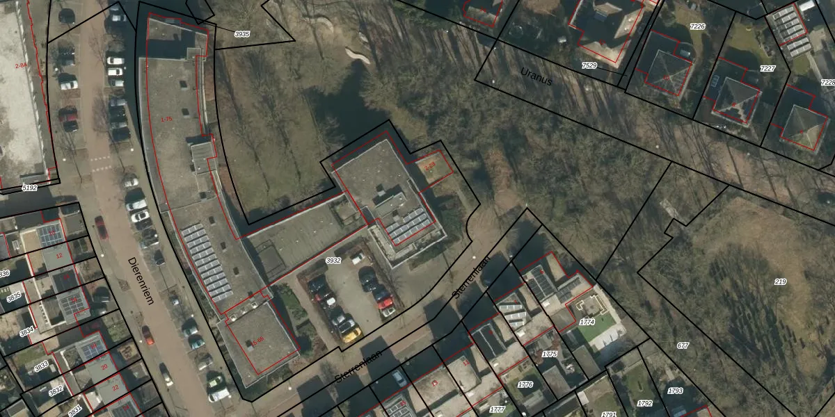 Het perceel waarop Sterrenlaan 22 staat heeft een oppervlakte van 3575 m². Dit is een zeer groot perceel. De perceeloppervlakte wordt geregistreerd door het Kadaster. Gedetailleerde informatie over de maten van dit perceel kunt u vinden in het rapport Kadastrale kaart met maatvoering van Sterrenlaan 22.