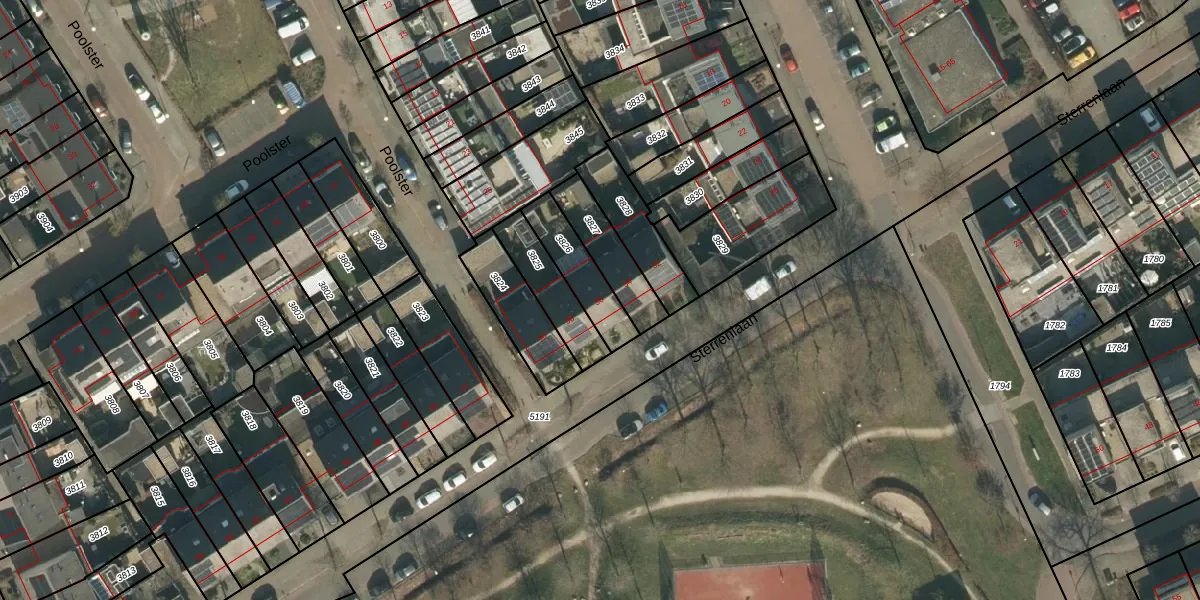 Sterrenlaan 36 is gelegen op kadastraal perceel SDL00G3826. Deze kadastrale aanduiding is uniek en wordt gebruikt door het Kadaster om eigendomsrechten en andere zakelijke rechten vast te leggen. Het perceel maakt onderdeel uit van de kadastrale gemeente Schijndel.