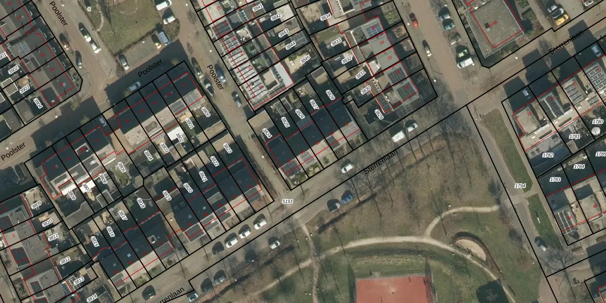 Sterrenlaan 38 is gelegen op kadastraal perceel SDL00G3825. Deze kadastrale aanduiding is uniek en wordt gebruikt door het Kadaster om eigendomsrechten en andere zakelijke rechten vast te leggen. Het perceel maakt onderdeel uit van de kadastrale gemeente Schijndel.