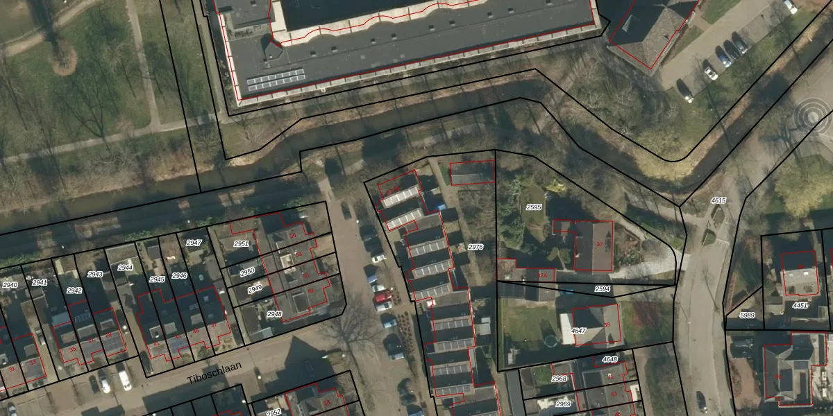 Tiboschlaan 65 is gelegen op kadastraal perceel SDL00H2976. Deze kadastrale aanduiding is uniek en wordt gebruikt door het Kadaster om eigendomsrechten en andere zakelijke rechten vast te leggen. Het perceel maakt onderdeel uit van de kadastrale gemeente Schijndel.