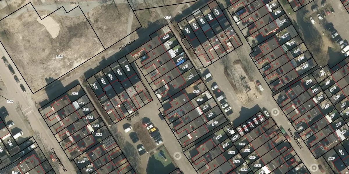 Het perceel waarop Tijmhof 28 staat heeft een oppervlakte van 206 m². Dit is een middelgroot perceel. De perceeloppervlakte wordt geregistreerd door het Kadaster. Gedetailleerde informatie over de maten van dit perceel kunt u vinden in het rapport Kadastrale kaart met maatvoering van Tijmhof 28.