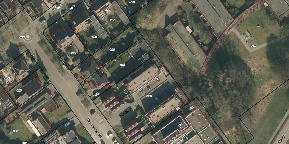 Het perceel waarop Tolakker 13 staat heeft een oppervlakte van 2226 m². Dit is een zeer groot perceel. De perceeloppervlakte wordt geregistreerd door het Kadaster. Gedetailleerde informatie over de maten van dit perceel kunt u vinden in het rapport Kadastrale kaart met maatvoering van Tolakker 13.