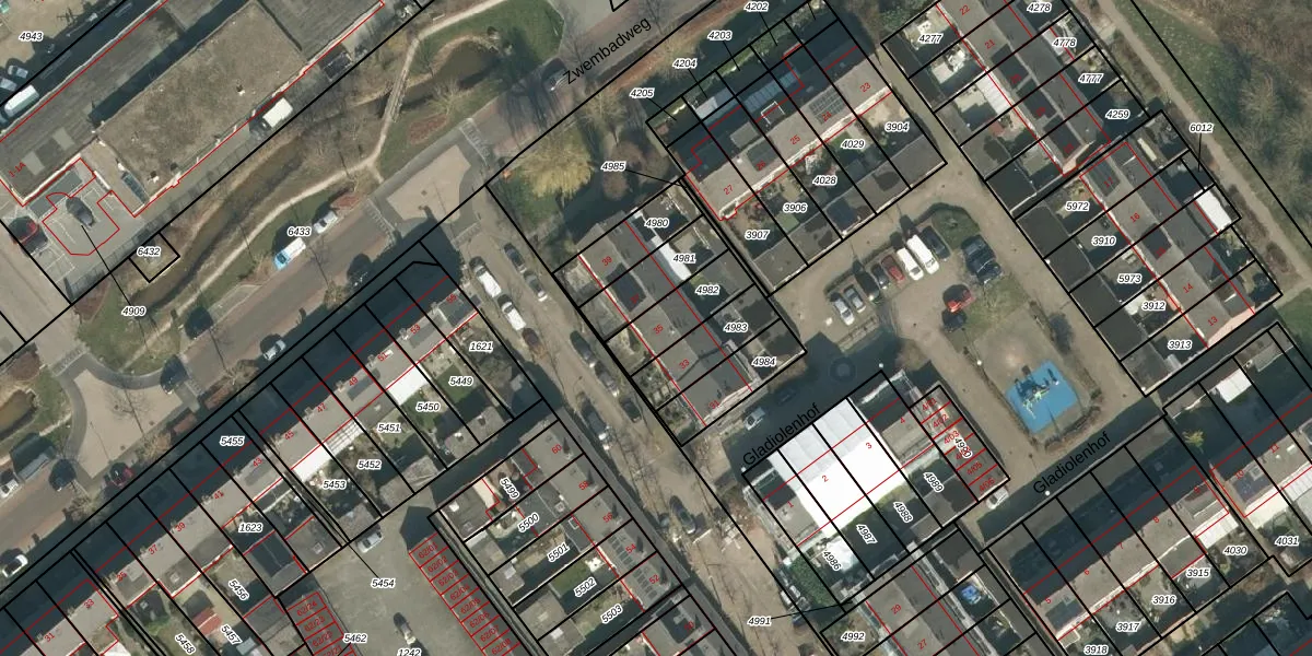 Het perceel waarop het adres ligt is SDL00-H-4982. De afkorting 'SDL00' staat voor kadastrale gemeente Schijndel. Het perceel is kleiner dan gemiddeld in Schijndel. Het perceel is 157 m² groot, terwijl het gemiddelde ligt op 2928,71 m². Het grootste perceel in de kadastrale gemeente is 41,5 ha. Het kleinste perceel heeft een oppervlakte van 0 m². Er zijn geen andere adressen aanwezig op het perceel. De laatste wijziging in het de Basisregistratie Kadaster (BRK) was op 16-08-2011.