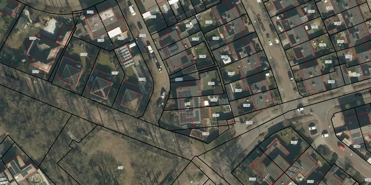 Het perceel waarop Uranus 9 staat heeft een oppervlakte van 296 m². Dit is een middelgroot perceel. De perceeloppervlakte wordt geregistreerd door het Kadaster. Gedetailleerde informatie over de maten van dit perceel kunt u vinden in het rapport Kadastrale kaart met maatvoering van Uranus 9.