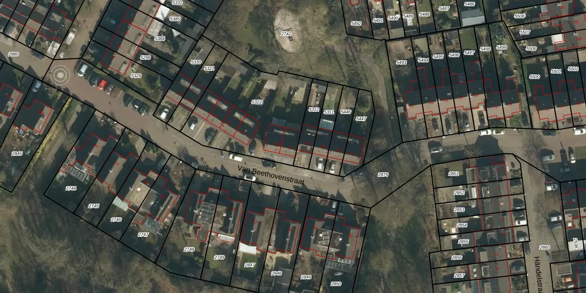 Het perceel waarop Van Beethovenstraat 51 staat heeft een oppervlakte van 1082 m². Dit is een zeer groot perceel. De perceeloppervlakte wordt geregistreerd door het Kadaster. Gedetailleerde informatie over de maten van dit perceel kunt u vinden in het rapport Kadastrale kaart met maatvoering van Van Beethovenstraat 51.