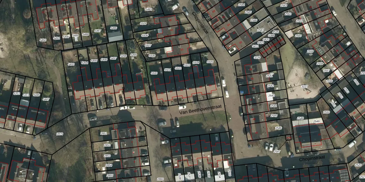 Het perceel waarop Van Beethovenstraat 79 staat heeft een oppervlakte van 141 m². Dit is een middelgroot perceel. De perceeloppervlakte wordt geregistreerd door het Kadaster. Gedetailleerde informatie over de maten van dit perceel kunt u vinden in het rapport Kadastrale kaart met maatvoering van Van Beethovenstraat 79.