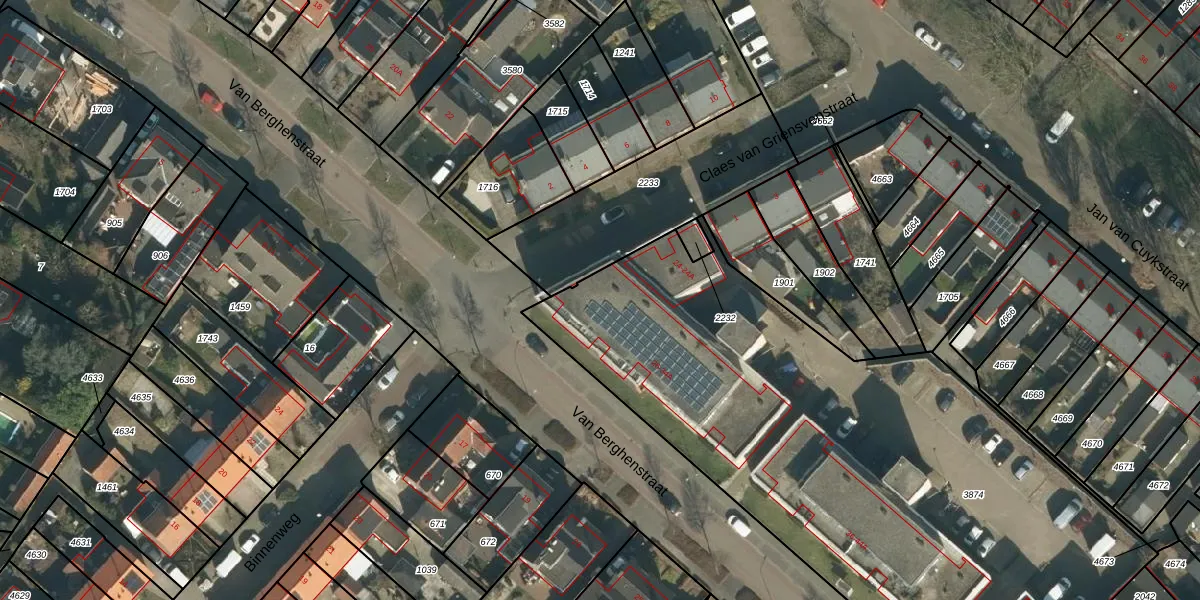 Het perceel waarop Van Berghenstraat 26-A staat heeft een oppervlakte van 4070 m². Dit is een zeer groot perceel. De perceeloppervlakte wordt geregistreerd door het Kadaster. Gedetailleerde informatie over de maten van dit perceel kunt u vinden in het rapport Kadastrale kaart met maatvoering van Van Berghenstraat 26-A.