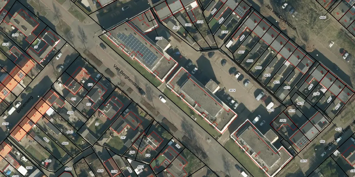 Het perceel waarop Van Berghenstraat 36 staat heeft een oppervlakte van 4070 m². Dit is een zeer groot perceel. De perceeloppervlakte wordt geregistreerd door het Kadaster. Gedetailleerde informatie over de maten van dit perceel kunt u vinden in het rapport Kadastrale kaart met maatvoering van Van Berghenstraat 36.