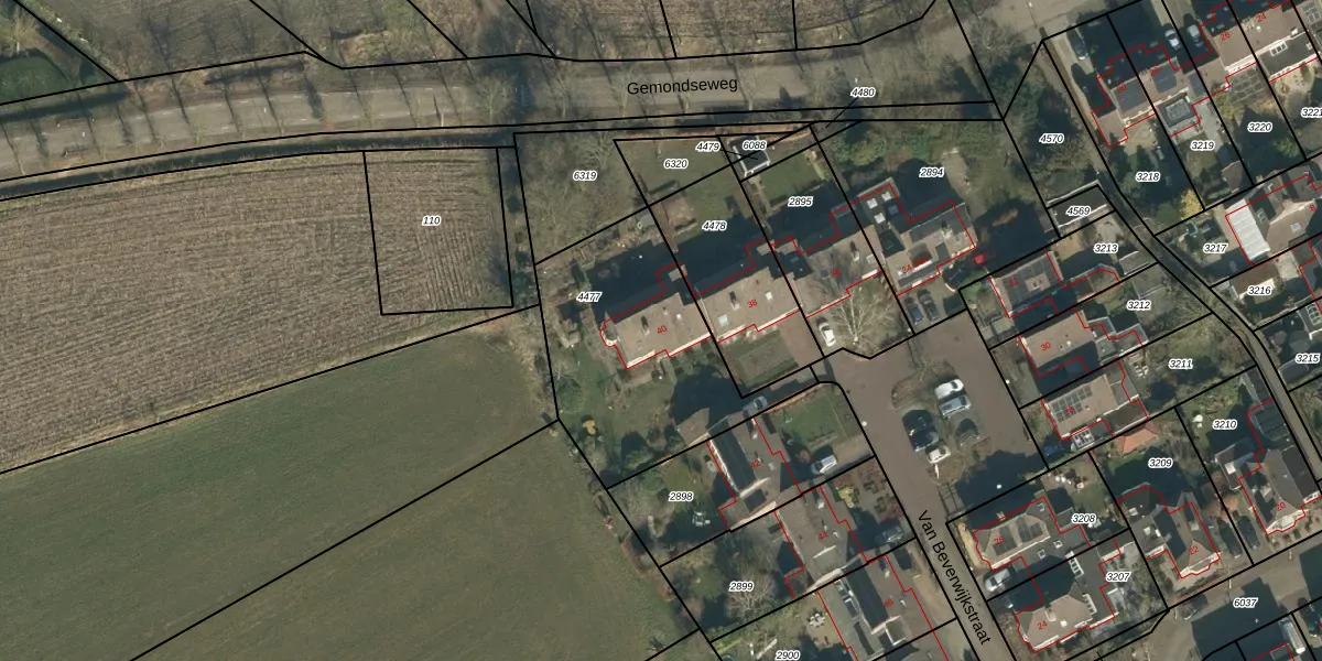 Van Beverwijkstraat 40 is gelegen op kadastraal perceel SDL00H4477. Deze kadastrale aanduiding is uniek en wordt gebruikt door het Kadaster om eigendomsrechten en andere zakelijke rechten vast te leggen. Het perceel maakt onderdeel uit van de kadastrale gemeente Schijndel.