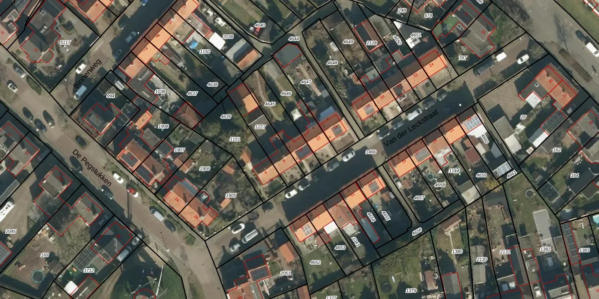 Van der Leckstraat 10 is gelegen op kadastraal perceel SDL00G4645. Deze kadastrale aanduiding is uniek en wordt gebruikt door het Kadaster om eigendomsrechten en andere zakelijke rechten vast te leggen. Het perceel maakt onderdeel uit van de kadastrale gemeente Schijndel.