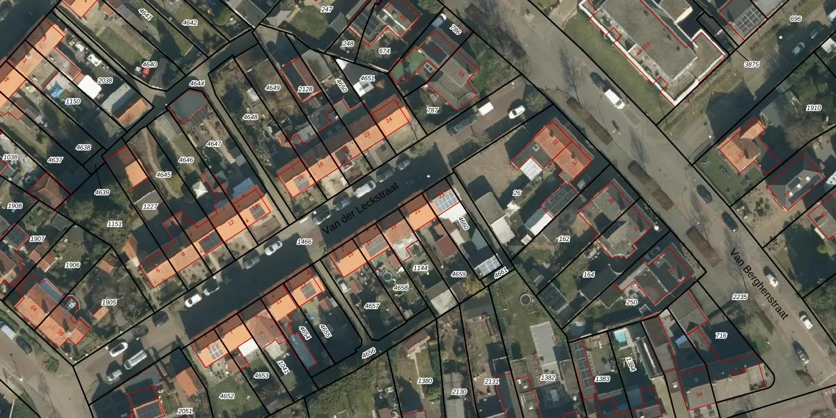 Het perceel waarop Van der Leckstraat 21 staat heeft een oppervlakte van 187 m². Dit is een middelgroot perceel. De perceeloppervlakte wordt geregistreerd door het Kadaster. Gedetailleerde informatie over de maten van dit perceel kunt u vinden in het rapport Kadastrale kaart met maatvoering van Van der Leckstraat 21.