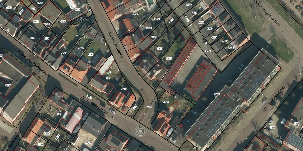 Het perceel waarop Vicaris Aertsweg 30 staat heeft een oppervlakte van 381 m². Dit is een groot perceel. De perceeloppervlakte wordt geregistreerd door het Kadaster. Gedetailleerde informatie over de maten van dit perceel kunt u vinden in het rapport Kadastrale kaart met maatvoering van Vicaris Aertsweg 30.