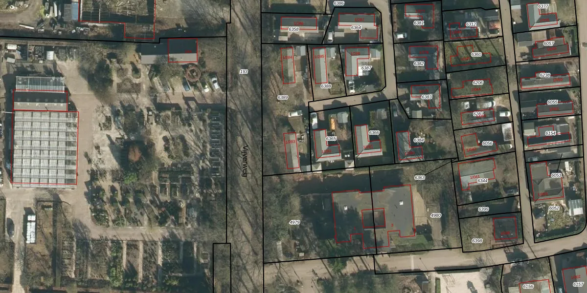 Het perceel waarop Vijverweg 1-283 staat heeft een oppervlakte van 728 m². Dit is een groot perceel. De perceeloppervlakte wordt geregistreerd door het Kadaster. Gedetailleerde informatie over de maten van dit perceel kunt u vinden in het rapport Kadastrale kaart met maatvoering van Vijverweg 1-283.