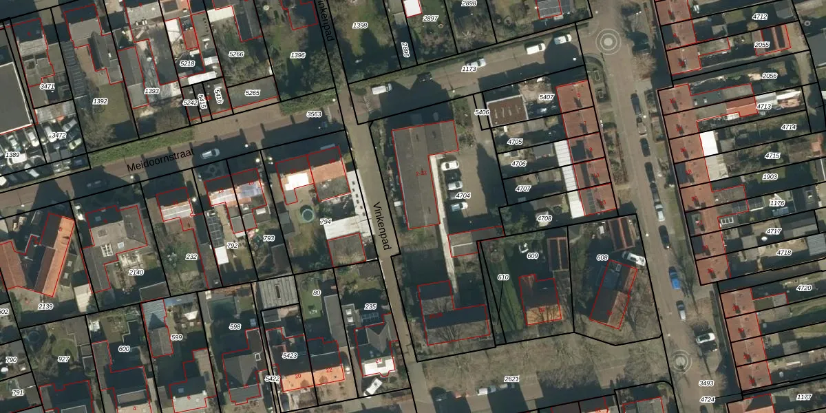Vinkenpad 8 is gelegen op kadastraal perceel SDL00G4704. Deze kadastrale aanduiding is uniek en wordt gebruikt door het Kadaster om eigendomsrechten en andere zakelijke rechten vast te leggen. Het perceel maakt onderdeel uit van de kadastrale gemeente Schijndel.