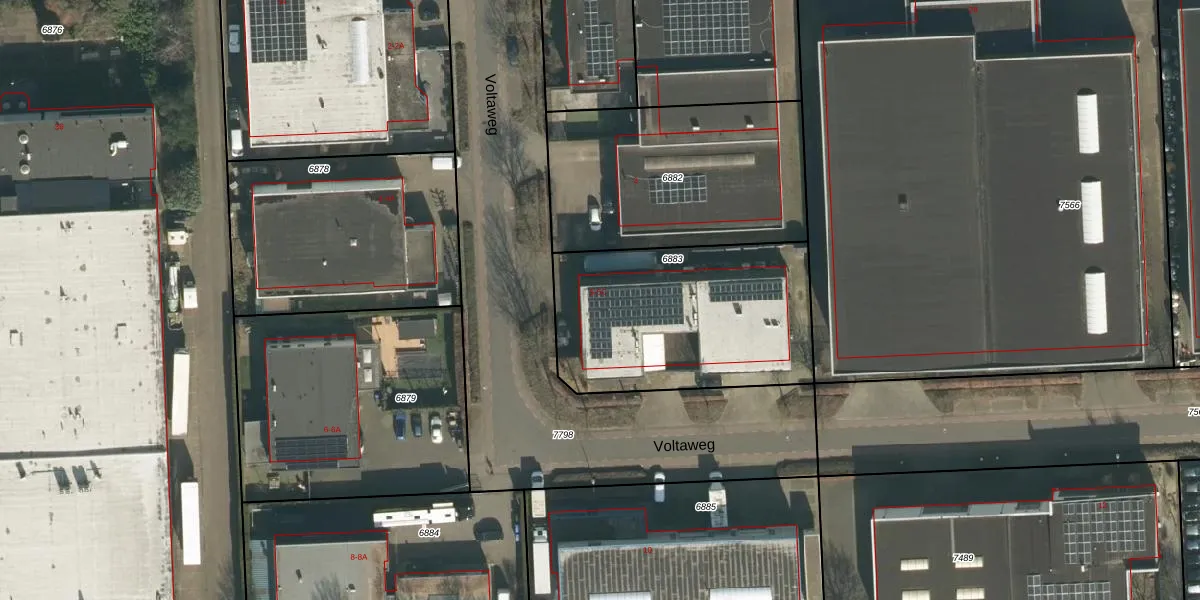 Het perceel waarop Voltaweg 5 staat heeft een oppervlakte van 1005 m². Dit is een zeer groot perceel. De perceeloppervlakte wordt geregistreerd door het Kadaster. Gedetailleerde informatie over de maten van dit perceel kunt u vinden in het rapport Kadastrale kaart met maatvoering van Voltaweg 5.