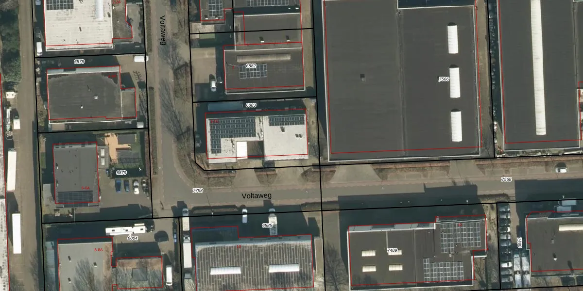Het perceel waarop Voltaweg 5-C staat heeft een oppervlakte van 1005 m². Dit is een zeer groot perceel. De perceeloppervlakte wordt geregistreerd door het Kadaster. Gedetailleerde informatie over de maten van dit perceel kunt u vinden in het rapport Kadastrale kaart met maatvoering van Voltaweg 5-C.