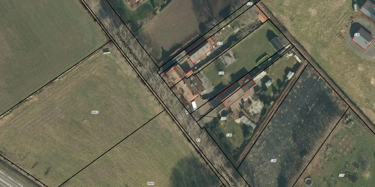 Vossenbergsesteeg 13 is gelegen op kadastraal perceel SDL00N132. Deze kadastrale aanduiding is uniek en wordt gebruikt door het Kadaster om eigendomsrechten en andere zakelijke rechten vast te leggen. Het perceel maakt onderdeel uit van de kadastrale gemeente Schijndel.