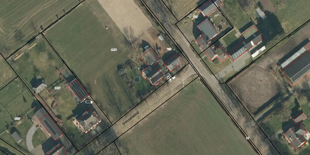 Vosseneind 12 is gelegen op kadastraal perceel SDL00H2476. Deze kadastrale aanduiding is uniek en wordt gebruikt door het Kadaster om eigendomsrechten en andere zakelijke rechten vast te leggen. Het perceel maakt onderdeel uit van de kadastrale gemeente Schijndel.