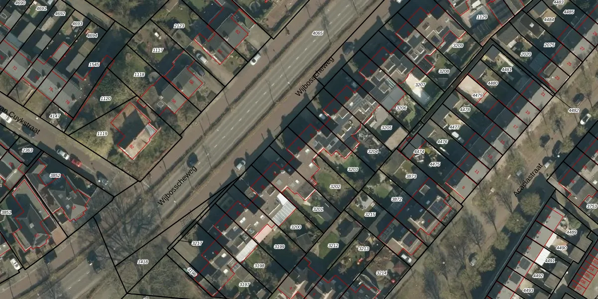 Wijbosscheweg 59 is gelegen op kadastraal perceel SDL00G3202. Deze kadastrale aanduiding is uniek en wordt gebruikt door het Kadaster om eigendomsrechten en andere zakelijke rechten vast te leggen. Het perceel maakt onderdeel uit van de kadastrale gemeente Schijndel.