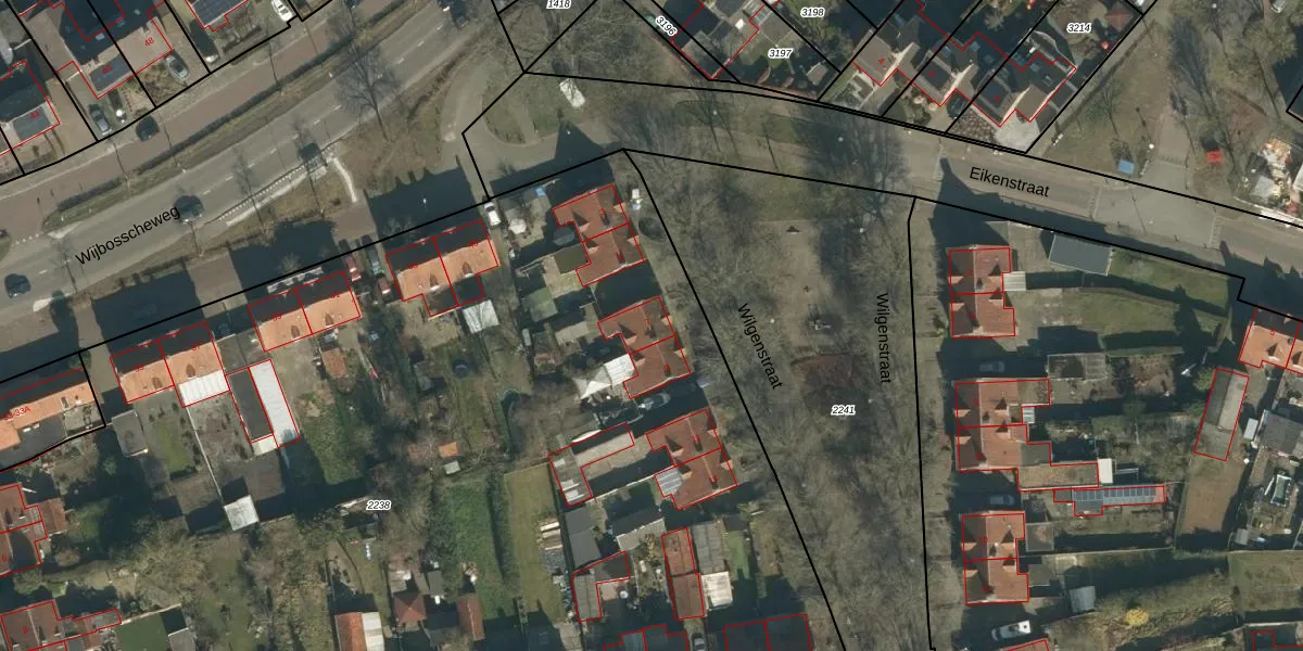 Het perceel waarop Wilgenstraat 7 staat heeft een oppervlakte van 9692 m². Dit is een zeer groot perceel. De perceeloppervlakte wordt geregistreerd door het Kadaster. Gedetailleerde informatie over de maten van dit perceel kunt u vinden in het rapport Kadastrale kaart met maatvoering van Wilgenstraat 7.