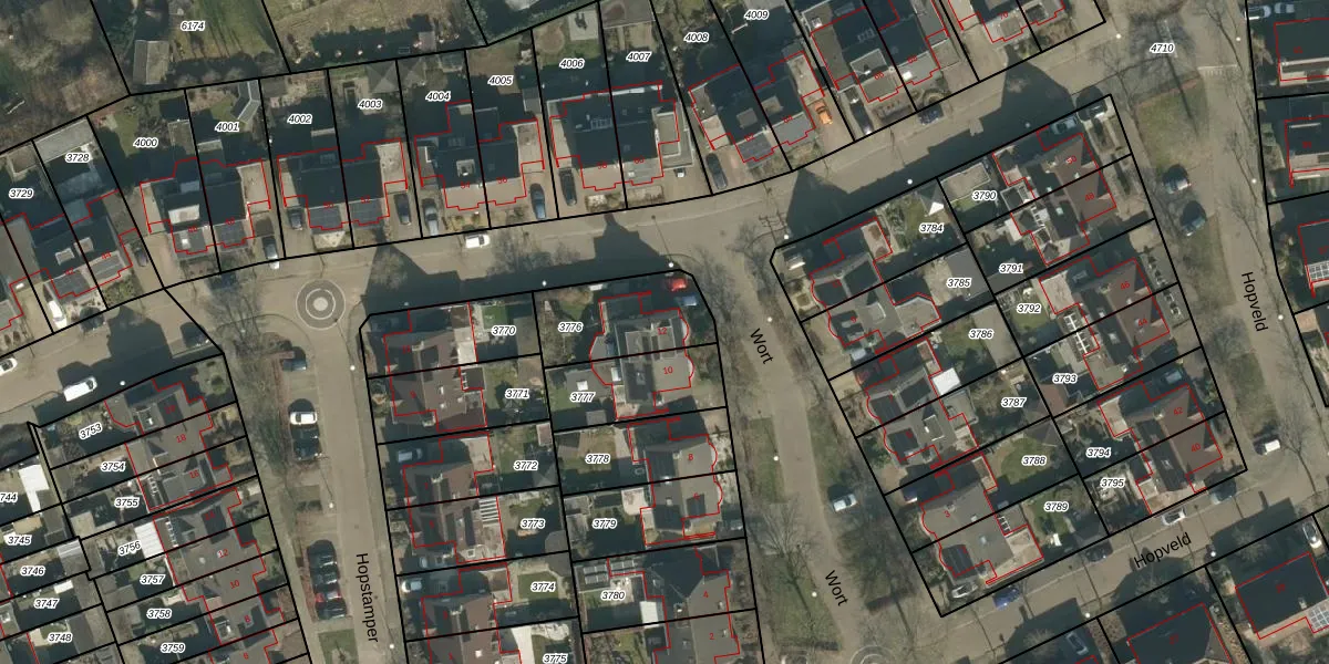 Het perceel waarop Wort 12 staat heeft een oppervlakte van 299 m². Dit is een middelgroot perceel. De perceeloppervlakte wordt geregistreerd door het Kadaster. Gedetailleerde informatie over de maten van dit perceel kunt u vinden in het rapport Kadastrale kaart met maatvoering van Wort 12.