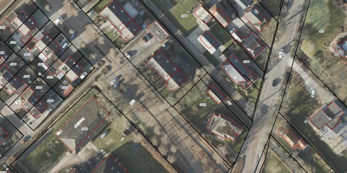 Schattersum 1 is gelegen op kadastraal perceel STR02P1616. Deze kadastrale aanduiding is uniek en wordt gebruikt door het Kadaster om eigendomsrechten en andere zakelijke rechten vast te leggen. Het perceel maakt onderdeel uit van de kadastrale gemeente Slochteren.