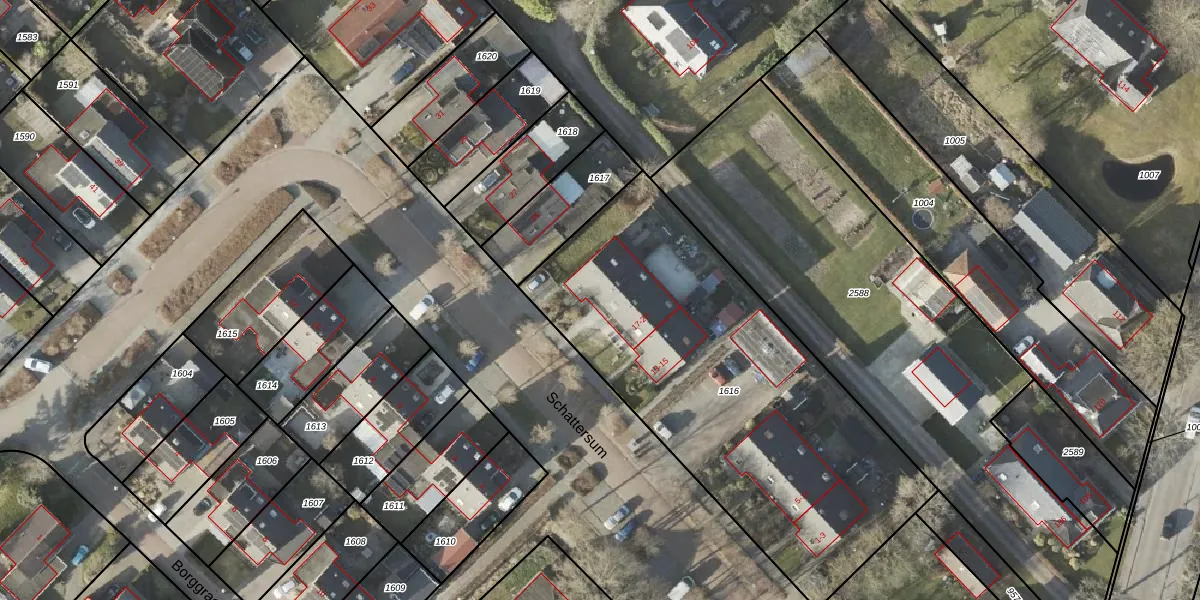 Schattersum 21 is gelegen op kadastraal perceel STR02P1616. Deze kadastrale aanduiding is uniek en wordt gebruikt door het Kadaster om eigendomsrechten en andere zakelijke rechten vast te leggen. Het perceel maakt onderdeel uit van de kadastrale gemeente Slochteren.